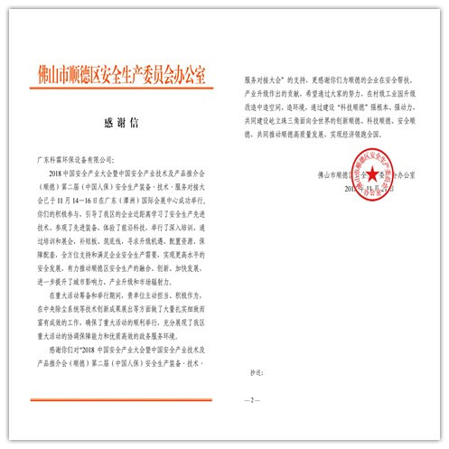 今天收到佛山市顺德区安监局的感谢信,让科霖环保集团全体员工深受鼓励,被认可与被欣赏,会成为一种力量,也深刻体会顺德区领导务实,真正为企业服务。